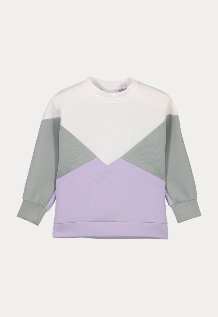 Features: Color Block Tunic Blouse Round Neck Long Sleeve Cuffed Sleeve Hem Band