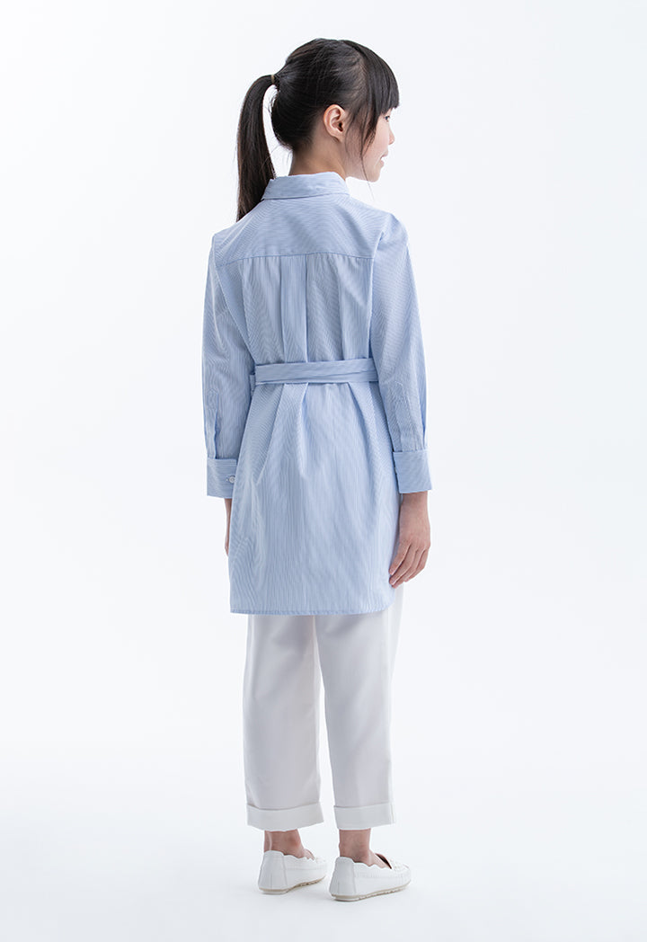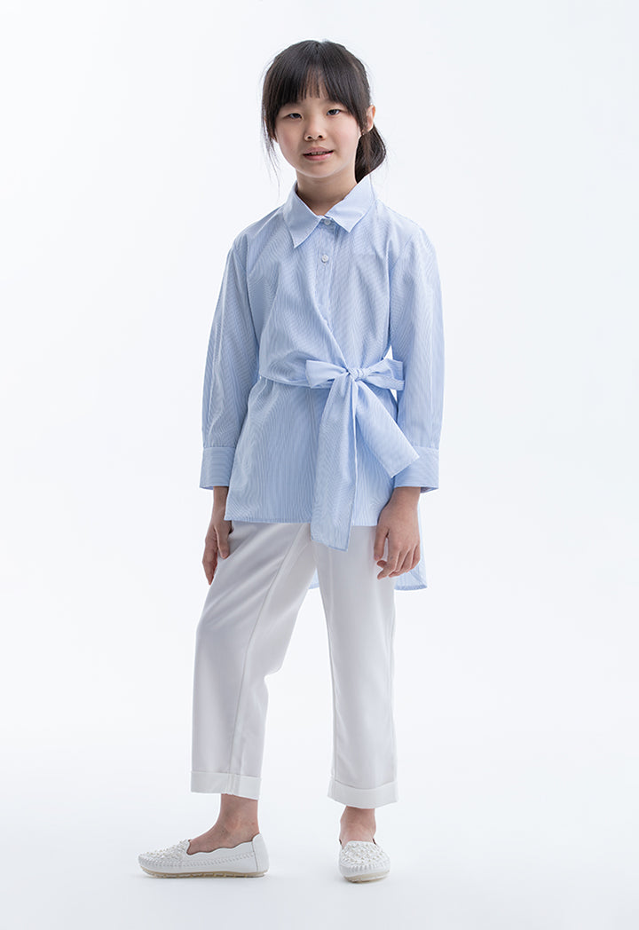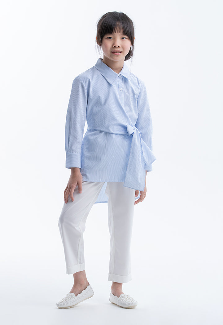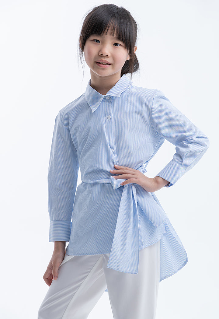 Striped Shirt With Over Lapped Self-Tie Wrap