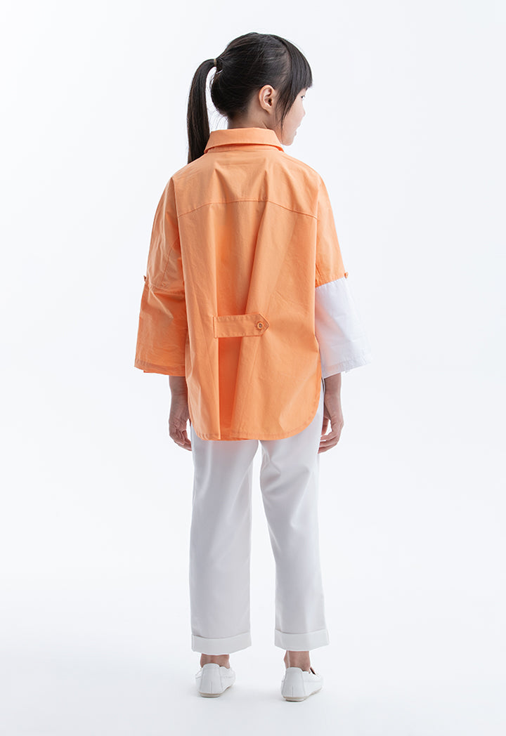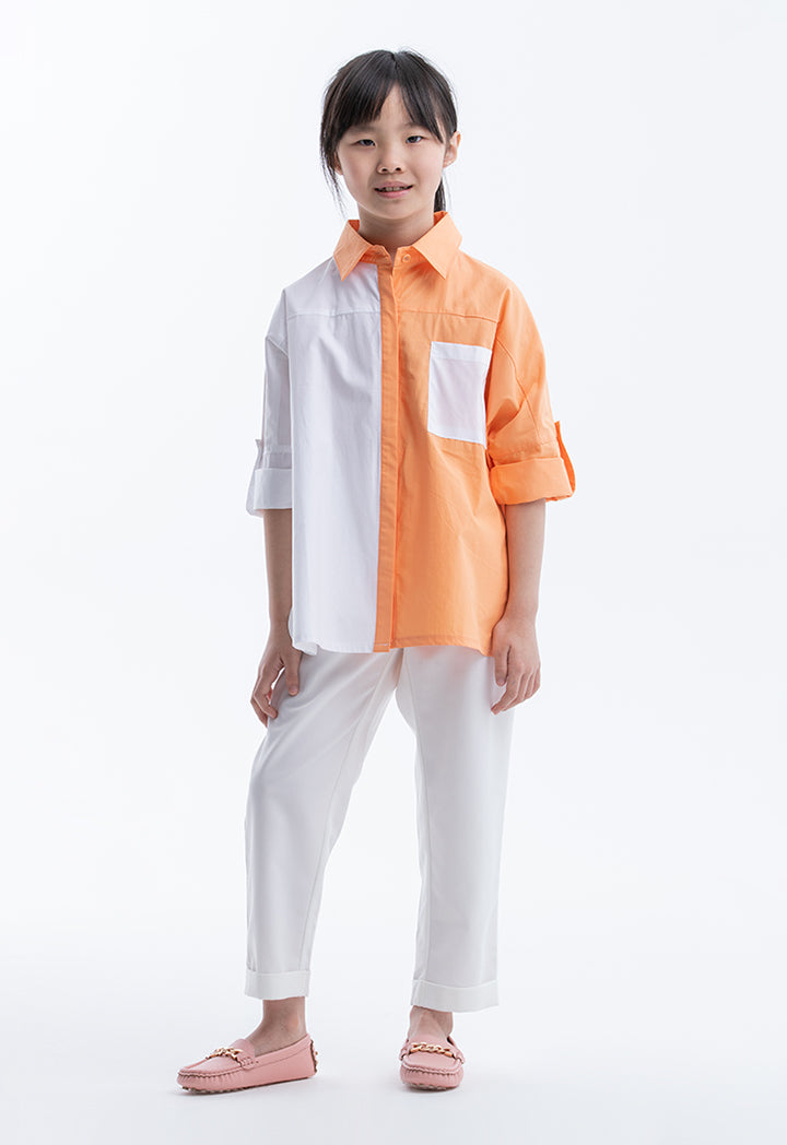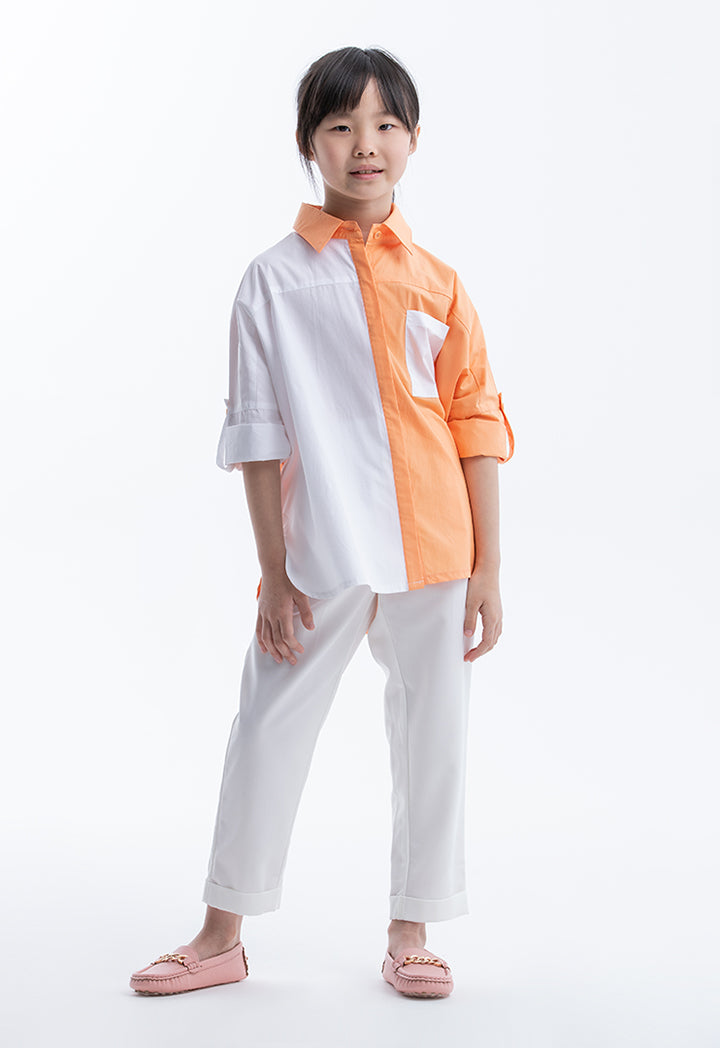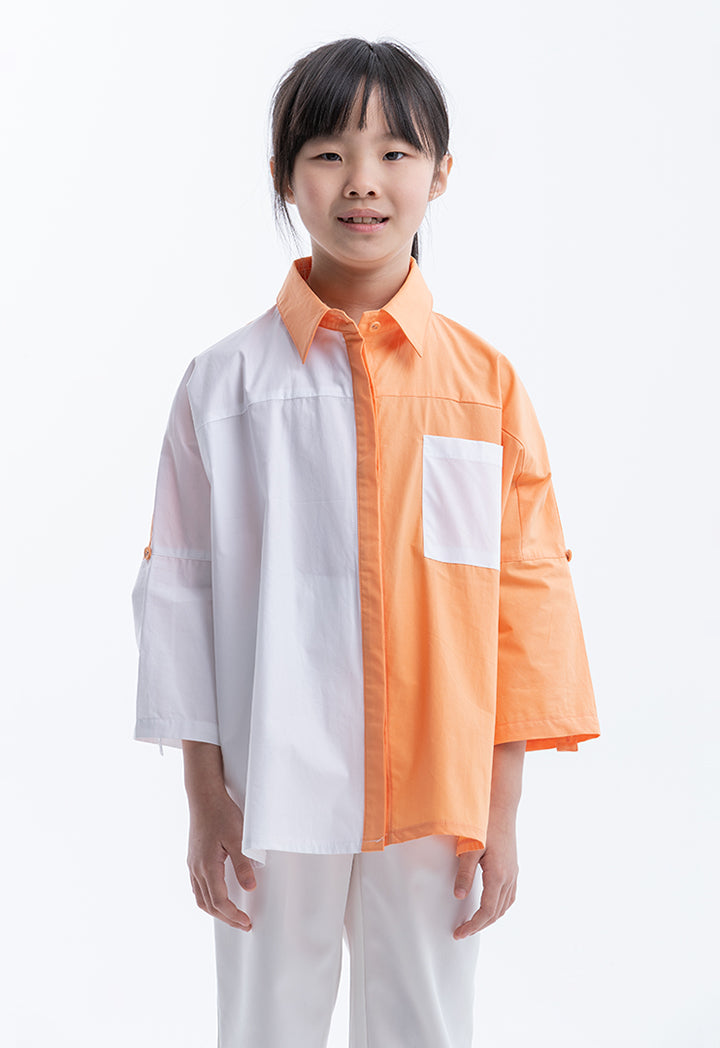 Collared Colorblock Rounded Hem Shirt