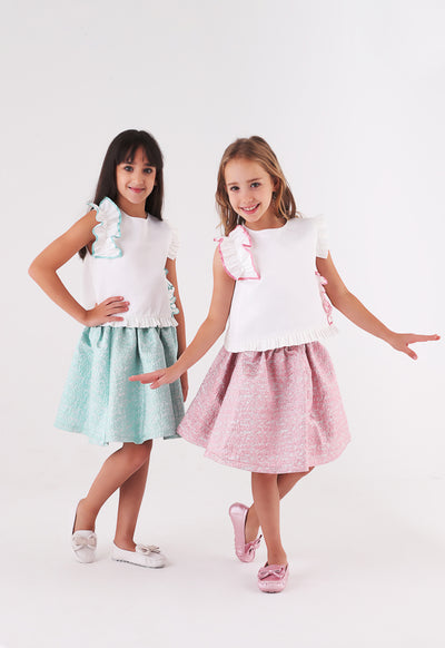 Plain Top Printed Skirt Set