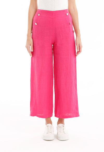 Solid Wide Legged Button Trouser