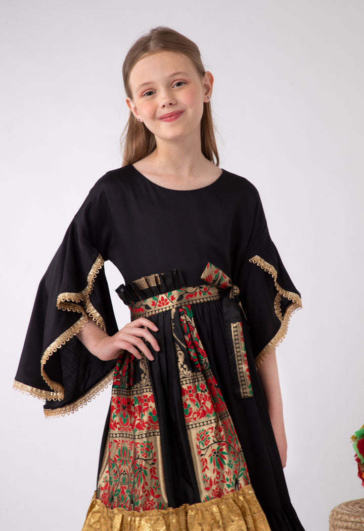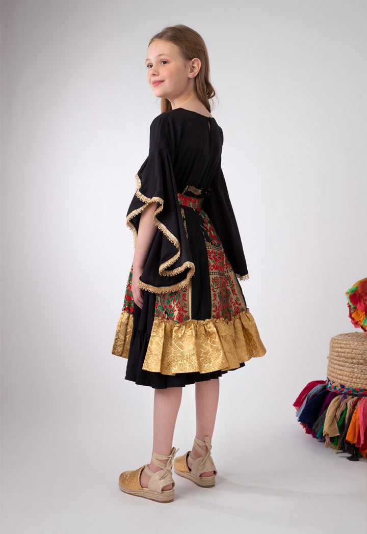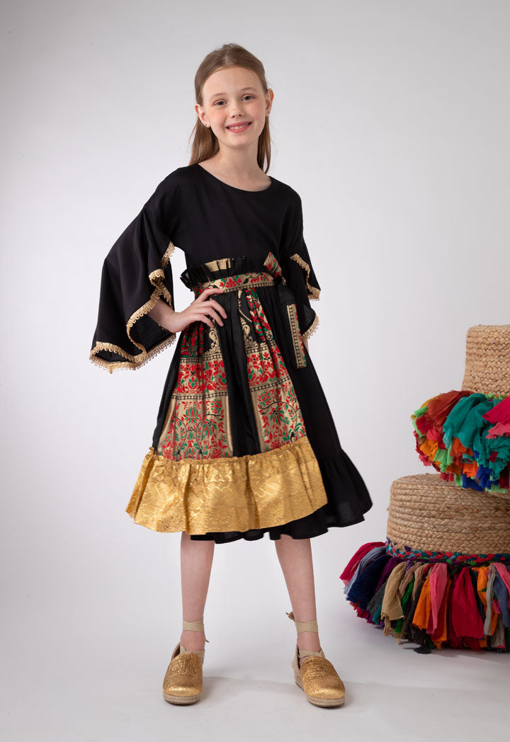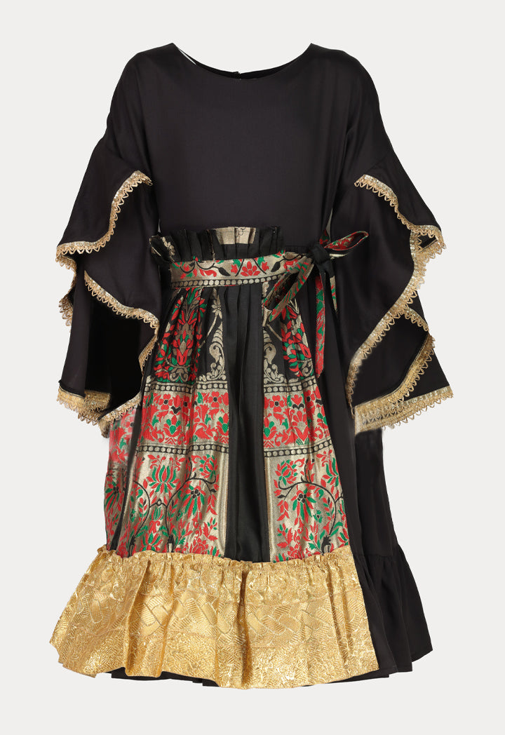 Features: Wrap Half Skirt Overlay Dress Round Neckline High Low Ruffle Sleeves Gathered Waist Keyhole With Button Closure At Back Frill Hem