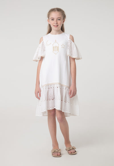 High-Low Cut Out Flounce Cold-Shoulder Dress