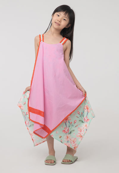 Floral Plaid Handkerchief Cut Sleeveless Dress