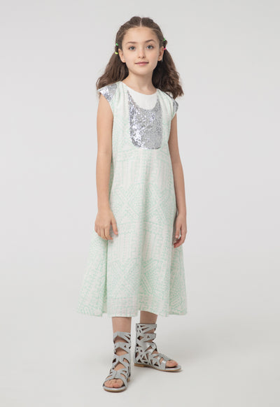 Printed Lurex Jacquard Wrap Half Skirt Overlay Dress