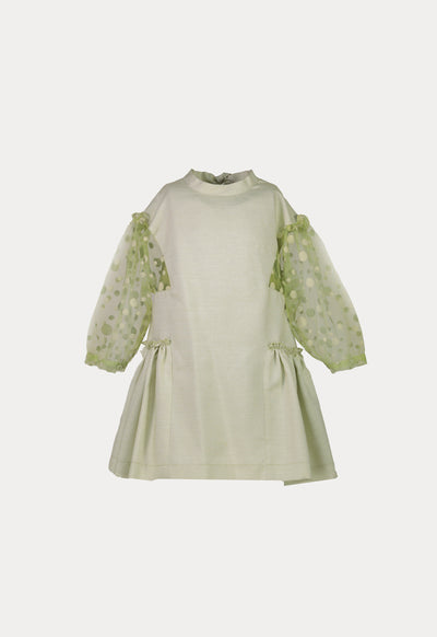 Polka Dot Flocked Mesh Balloon Sleeve Stripe Lurex Dress