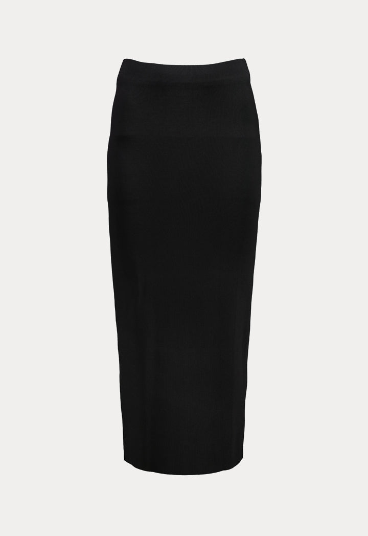 Features: Knitted Skirt Elastic Waistband Stretchable Fit Pencil Cut Midi Length