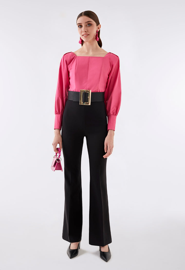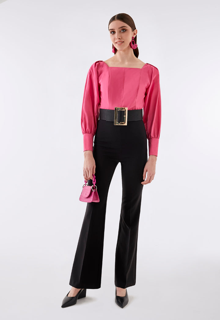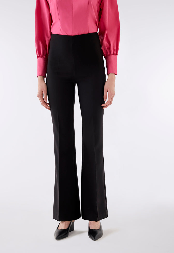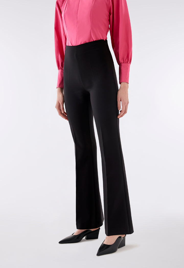 Features: Trouser High Waist Concealed Side Zipped Closure Bell Bottom Cut Blind Hem
