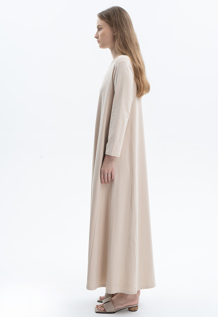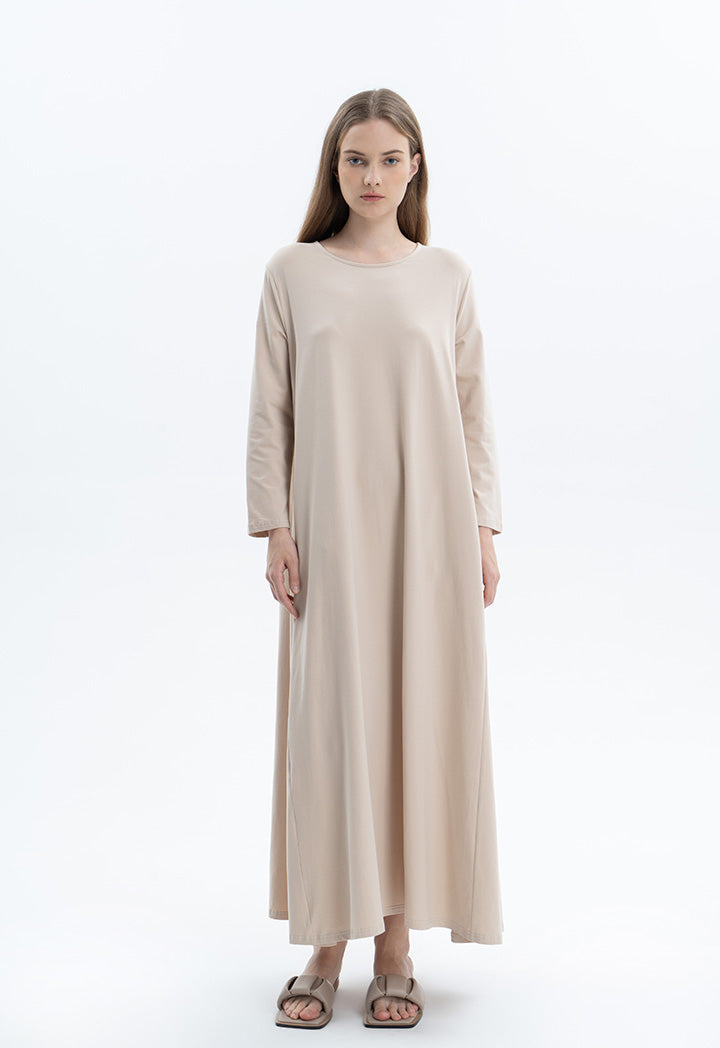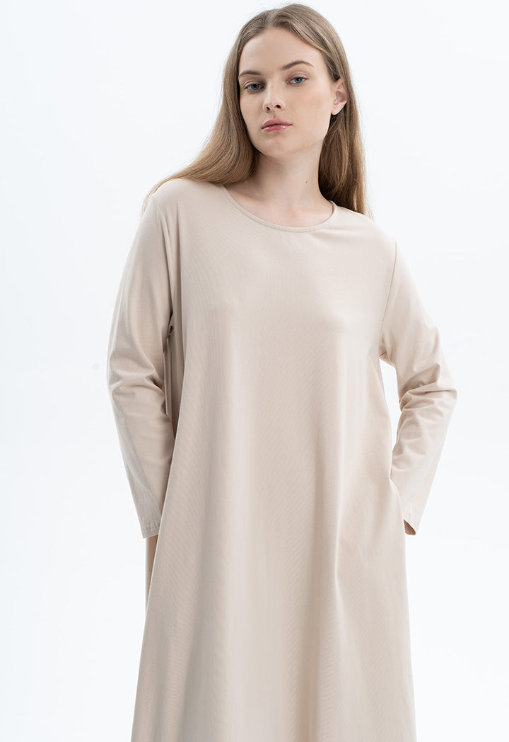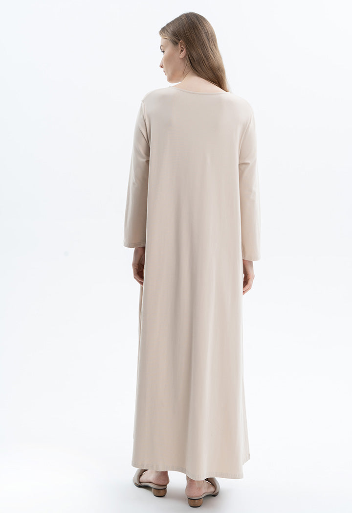 Look chic when donning this solid dress for the next shopping spree with friends. Featuring a round neckline and Long sleeves, it will offer comfortable wear. Match it with dangling earrings and sandals for a trendy appeal.