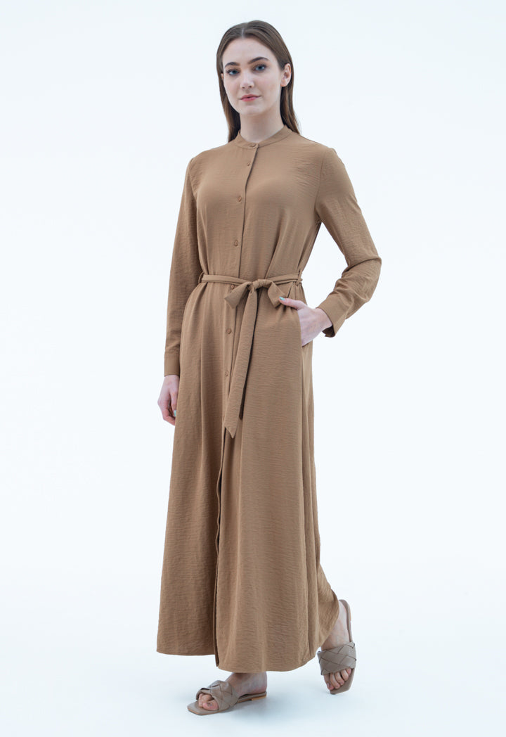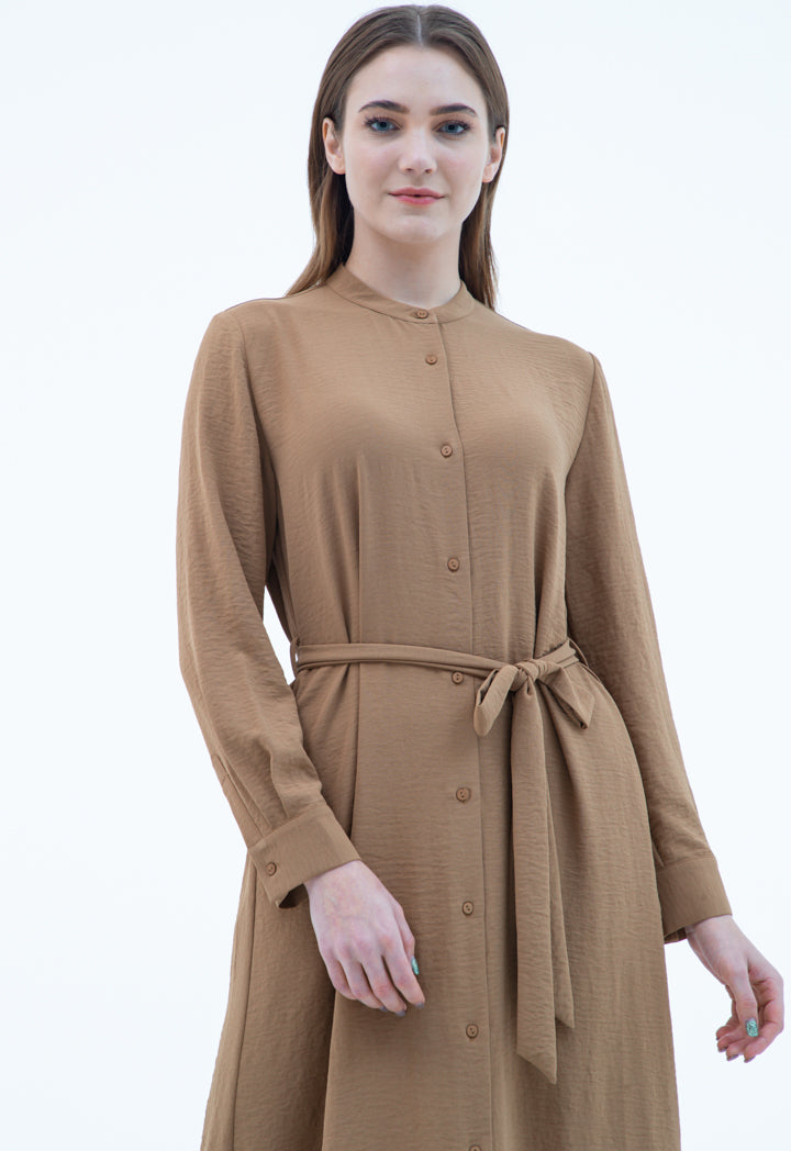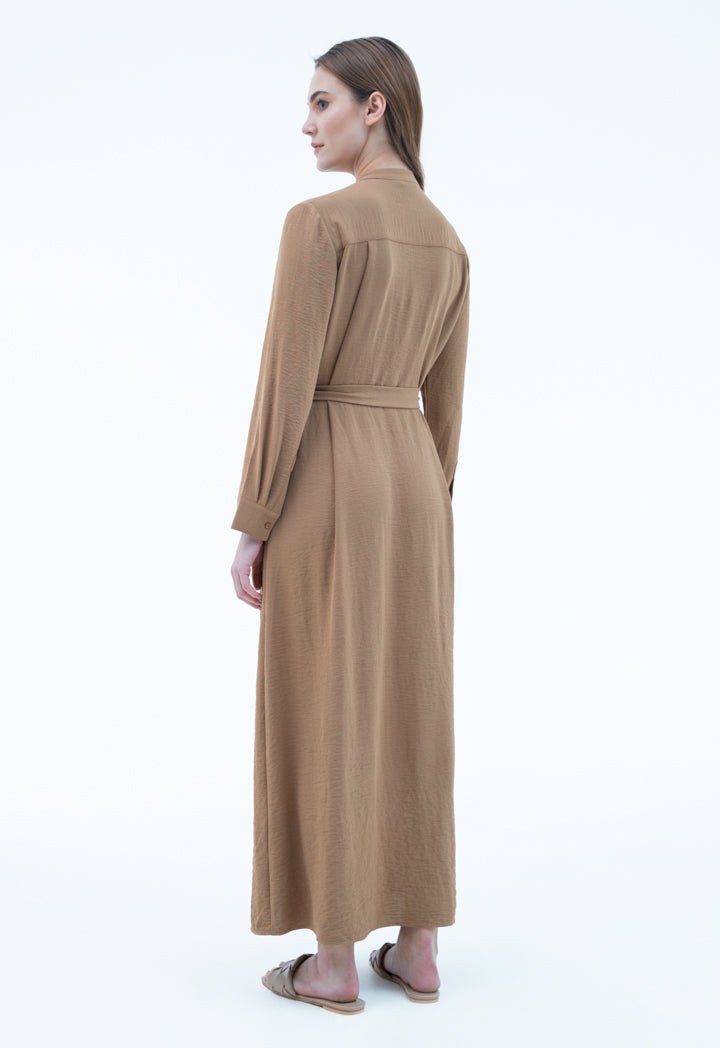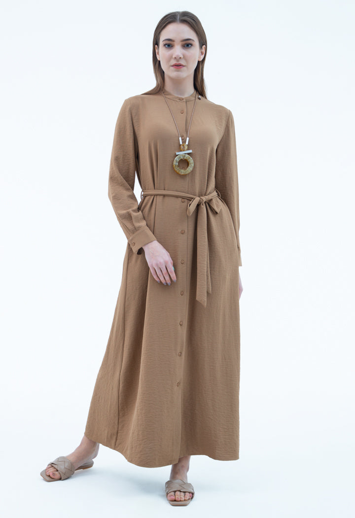 Reveal your charming side at the next casual event by wearing this solid Slim Collared maxi shirt dress with a pair of stiletto heels or comfortable sneakers. This shirt dress has a round collar and a self-fabric belt around the waist will lend a tapered look to your ensemble.