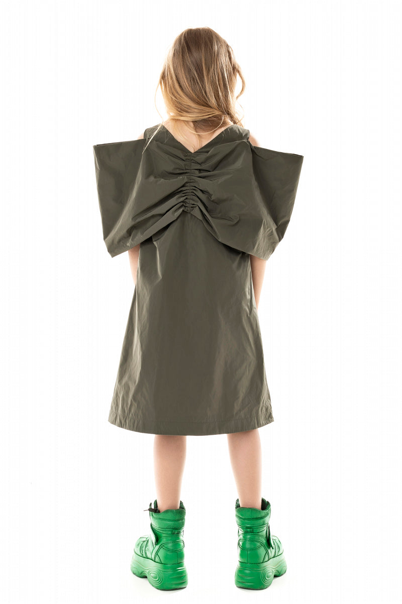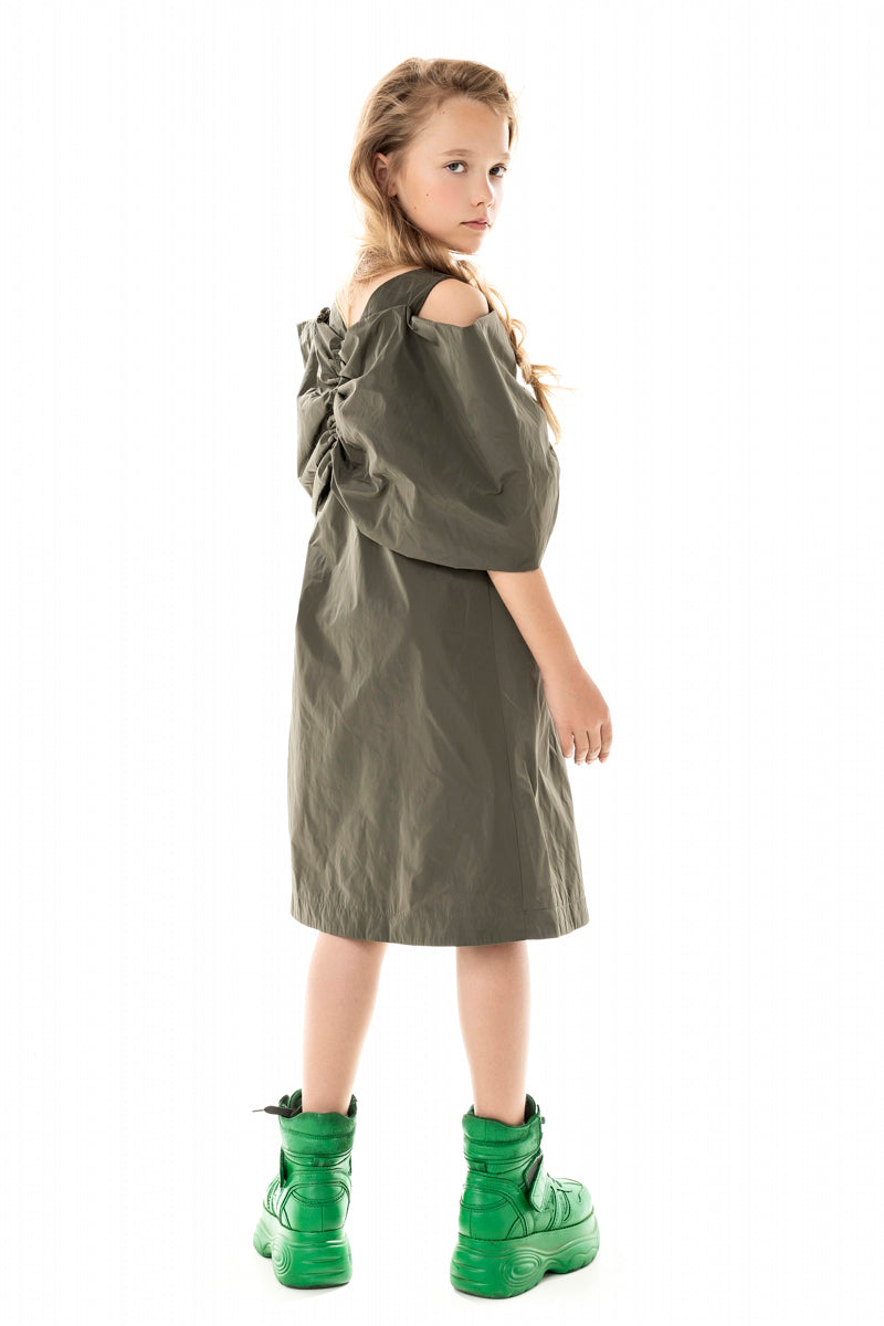 OVERSIZED FRONT BOW KHAKI DRESS