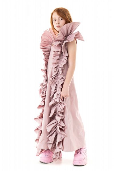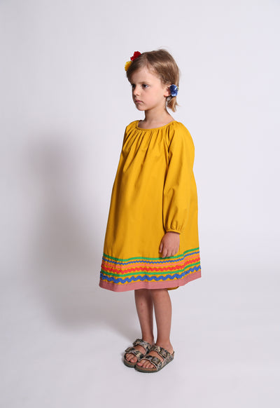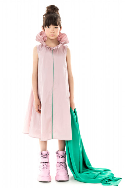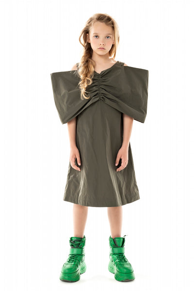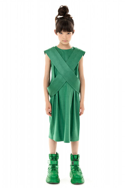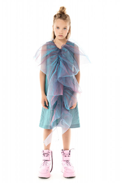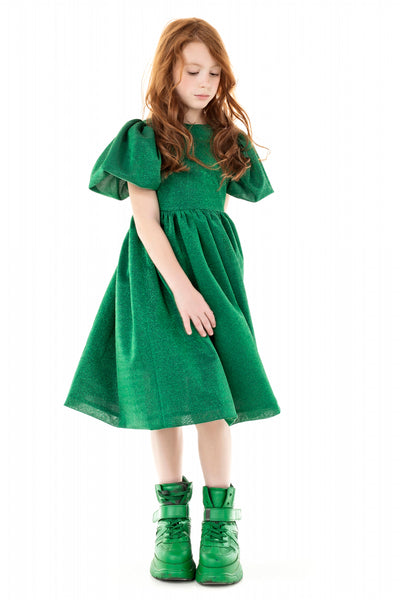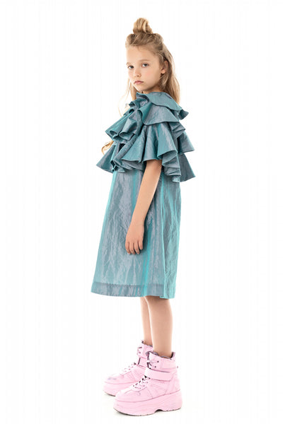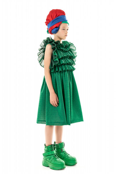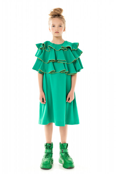 RUFFLE WITH PIPING YOKE GREEN DRESS