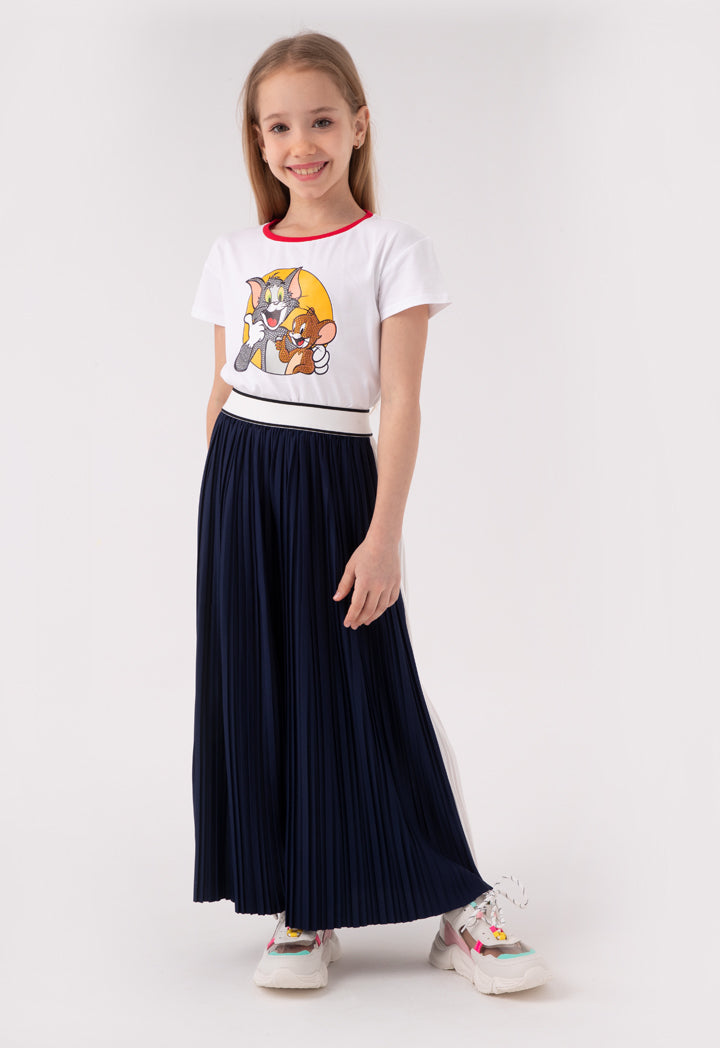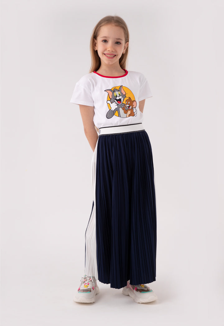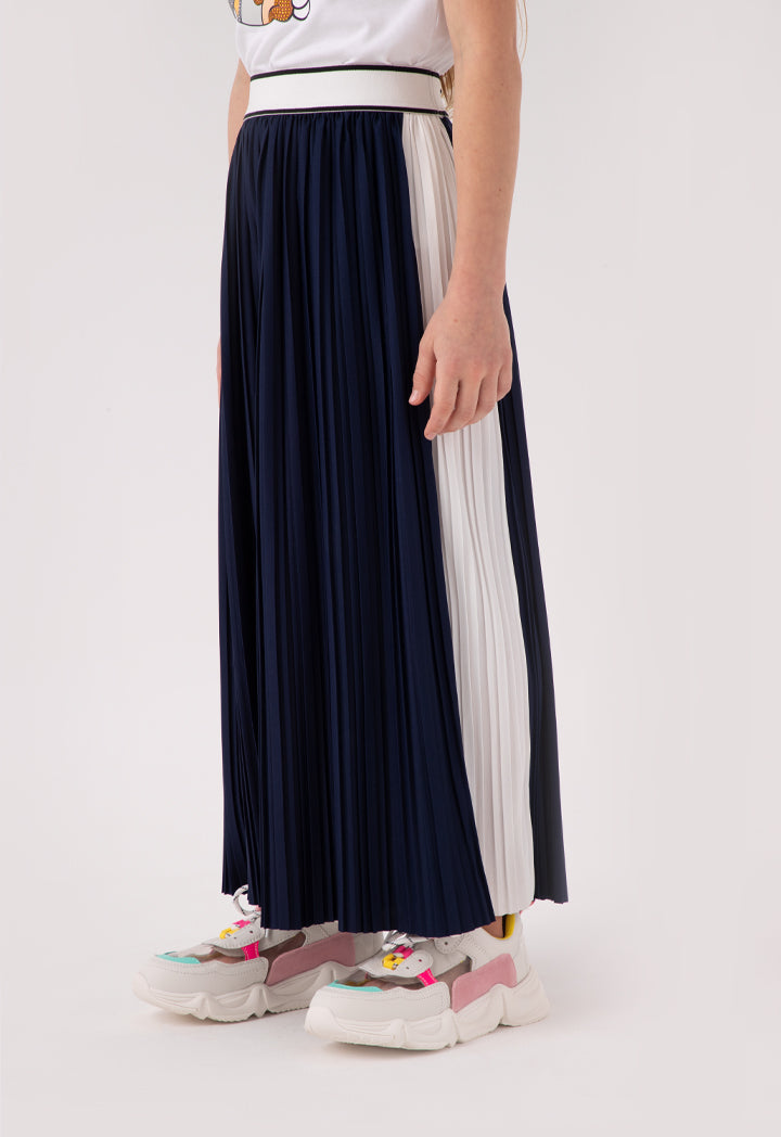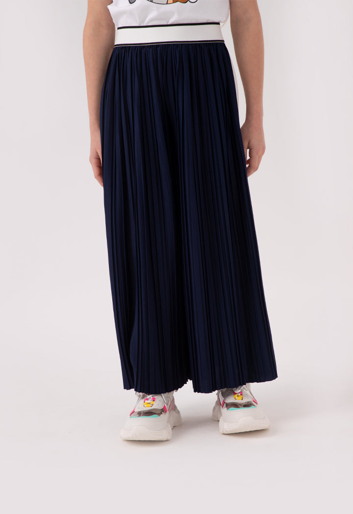 Stripe Edge Exposed Elastic Waistband Pleated Culottes