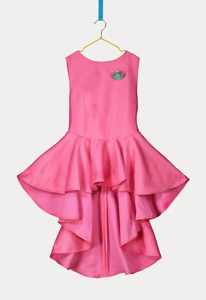 Features: Dress Round Neckline Sleeveless Invisible Zip Closure At Back Panel Floral Brooch Accent At Front Panel High Low Flare Hem