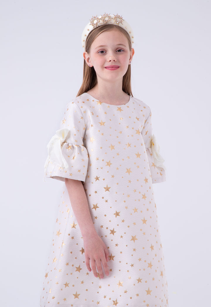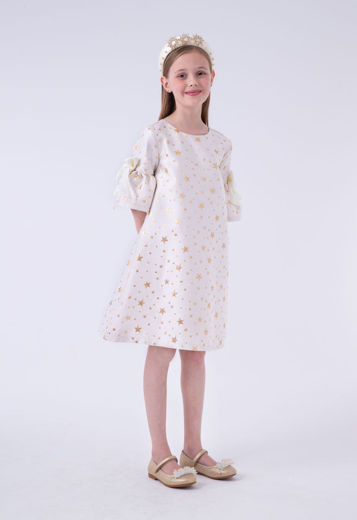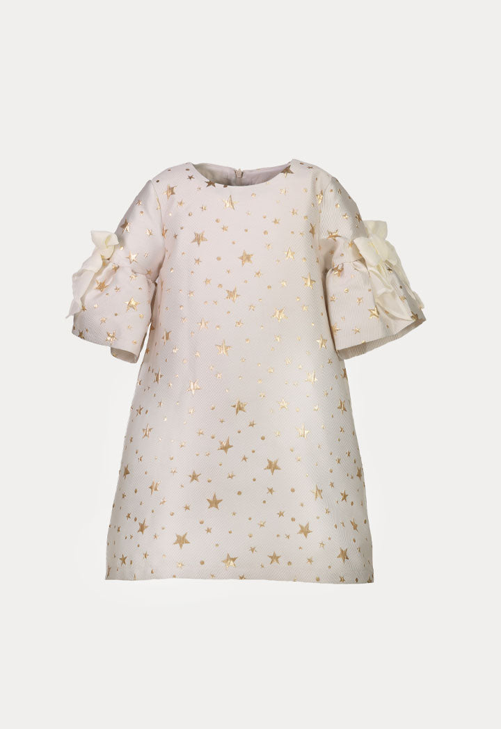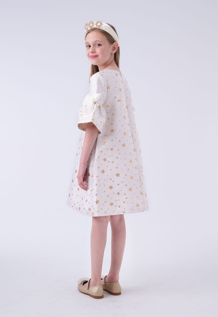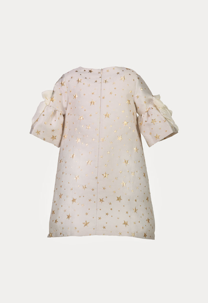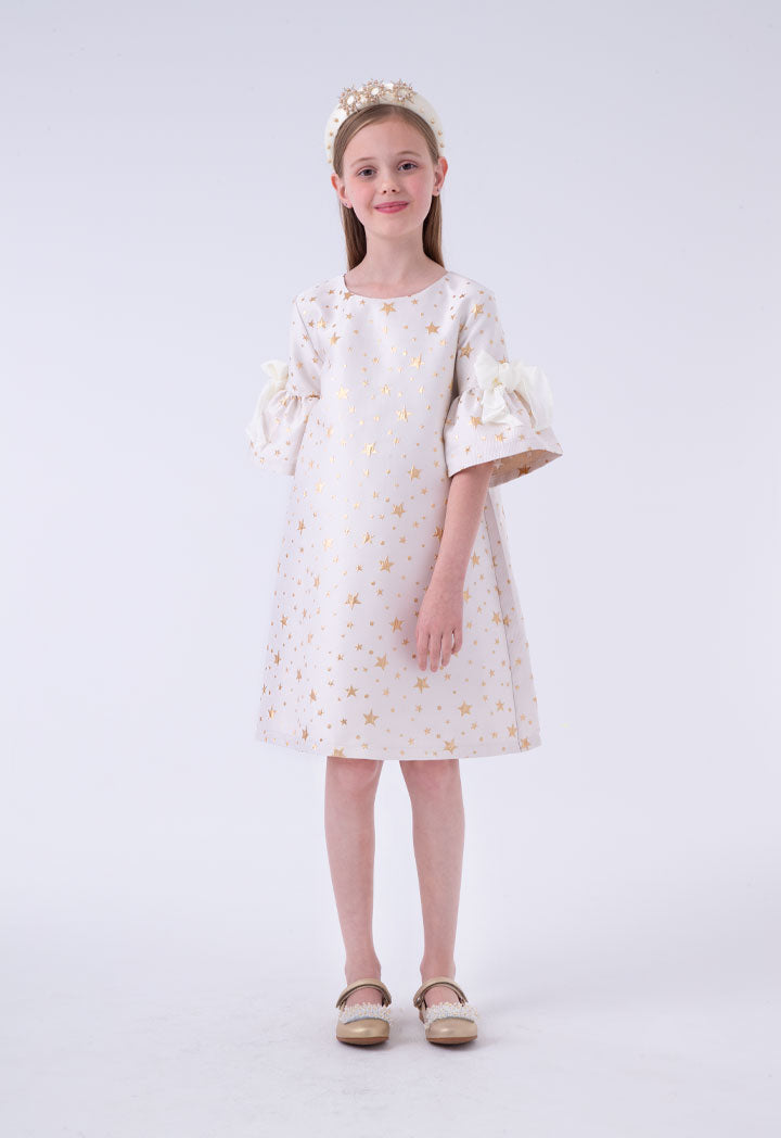 3/4 Pagoda Sleeve Dress Round Neckline Zipper Closure At Back