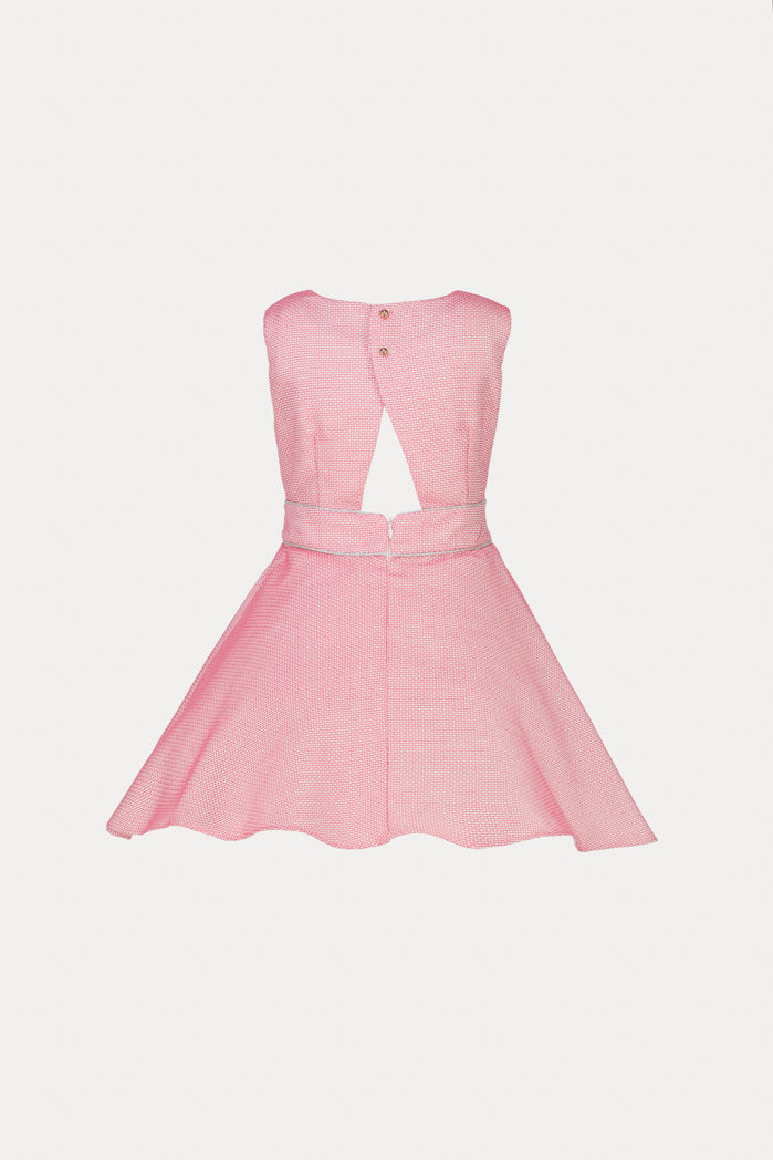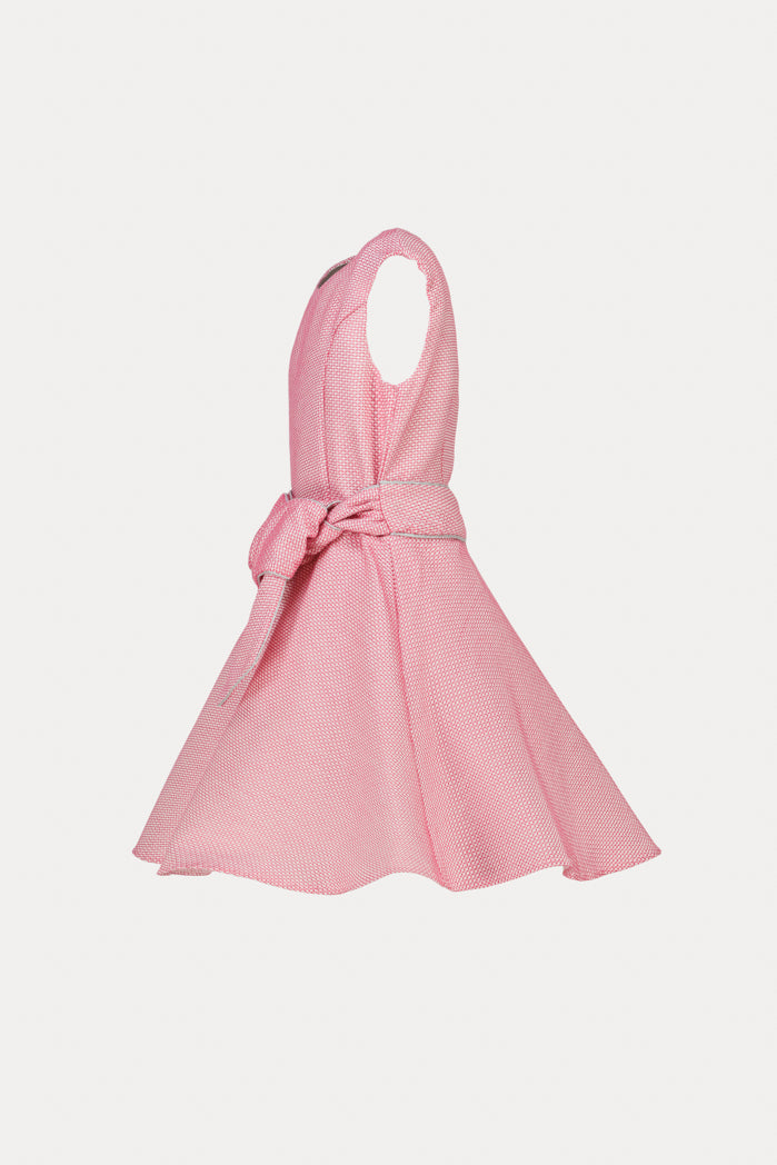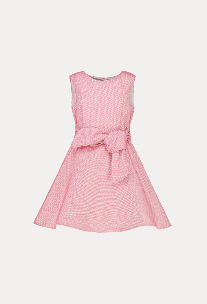 Features: Dress Round Neckline Sleeveless Self Tie Belt With Inner Lining Texture Fabric A-Line Cut