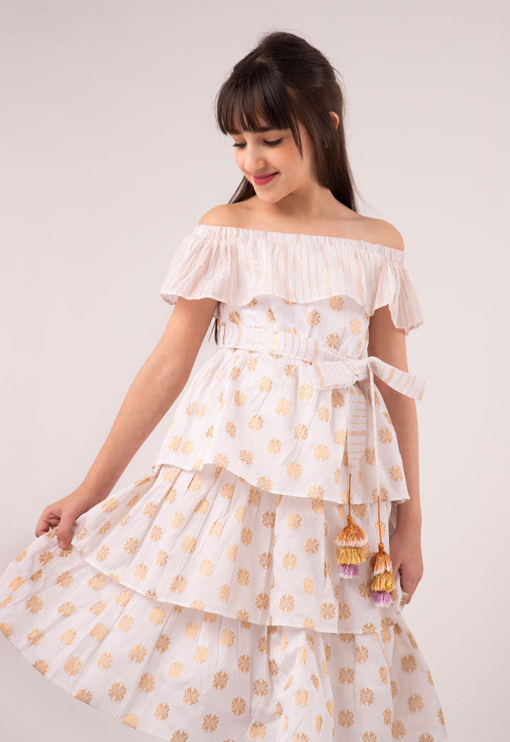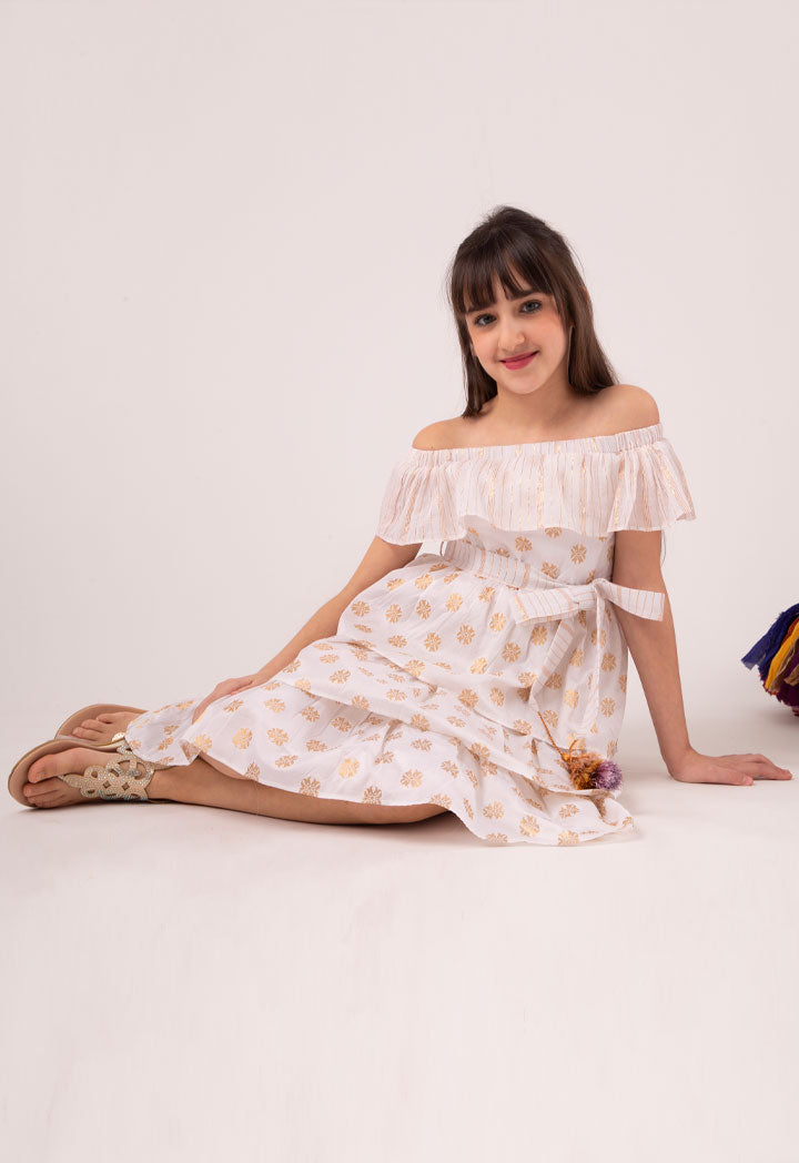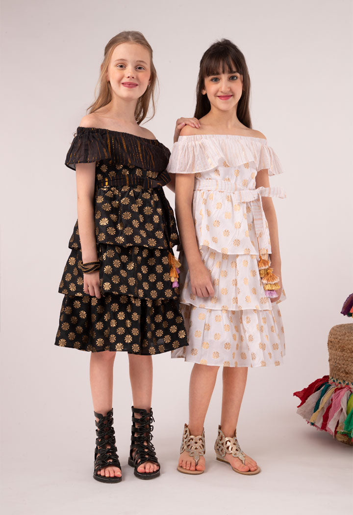 Layered Off Shoulder Lurex Dress