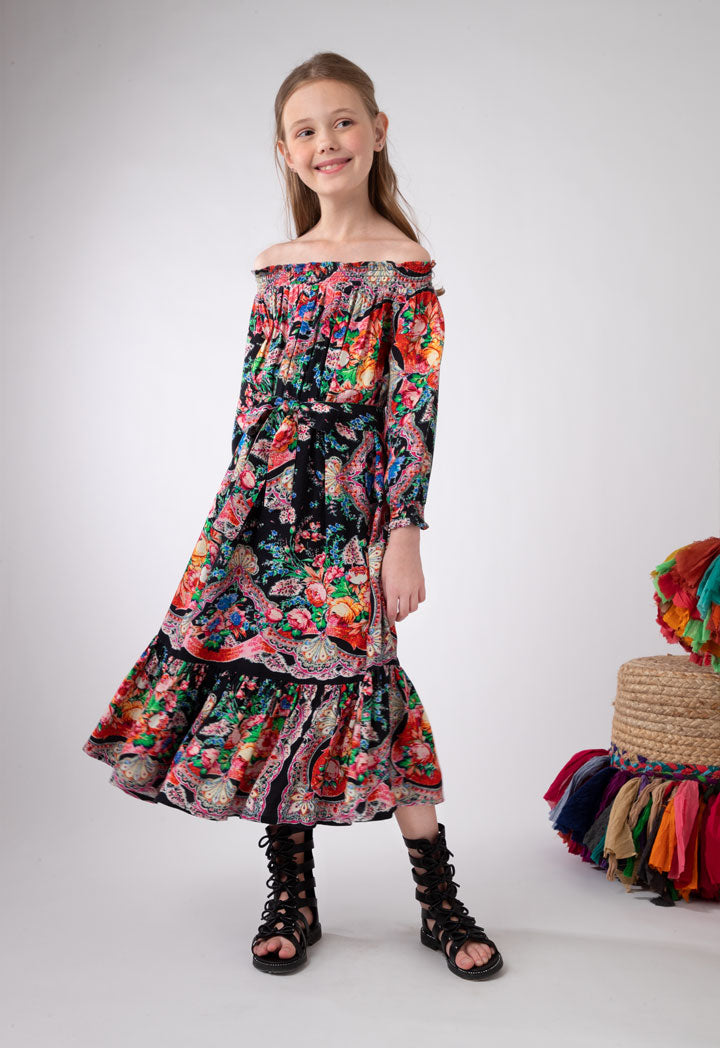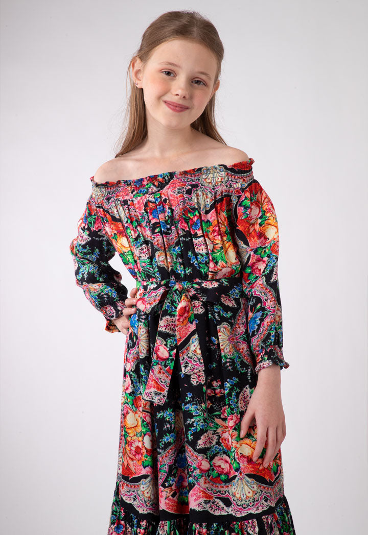 Off-Shoulder Floral Printed Dress