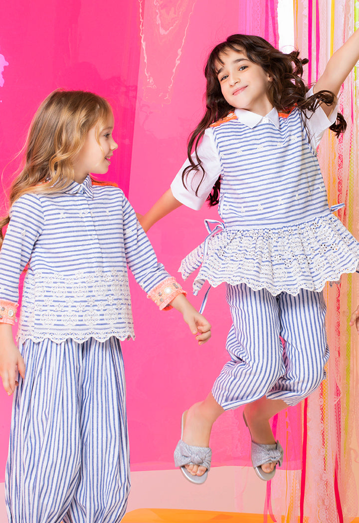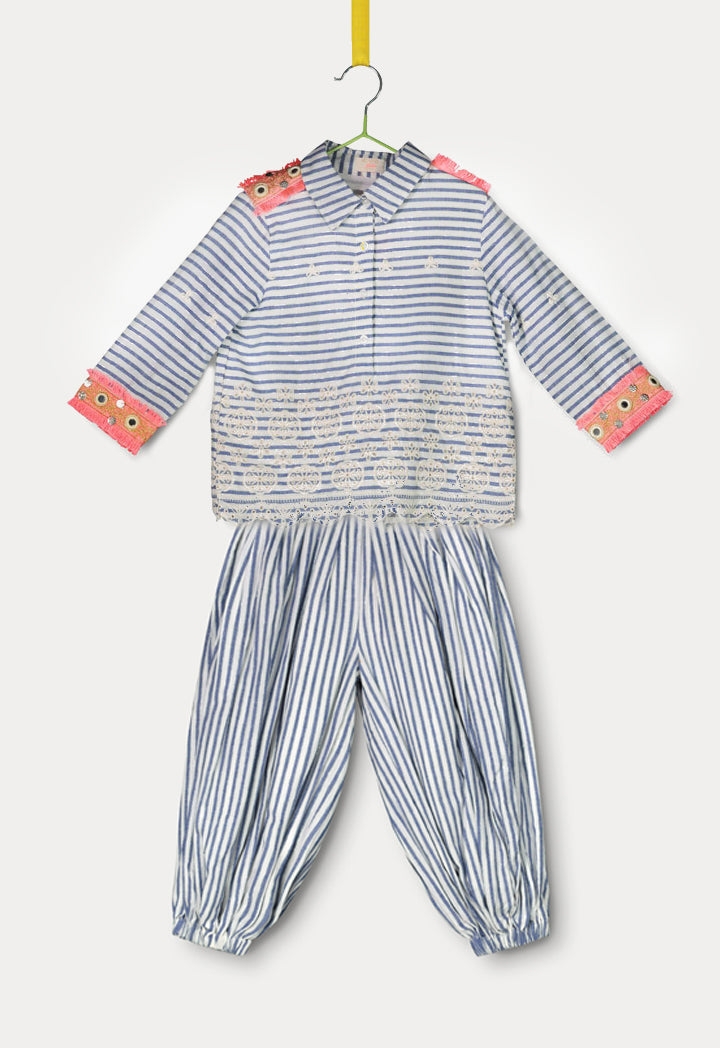 Striped Mirror Embroidered Dress Set