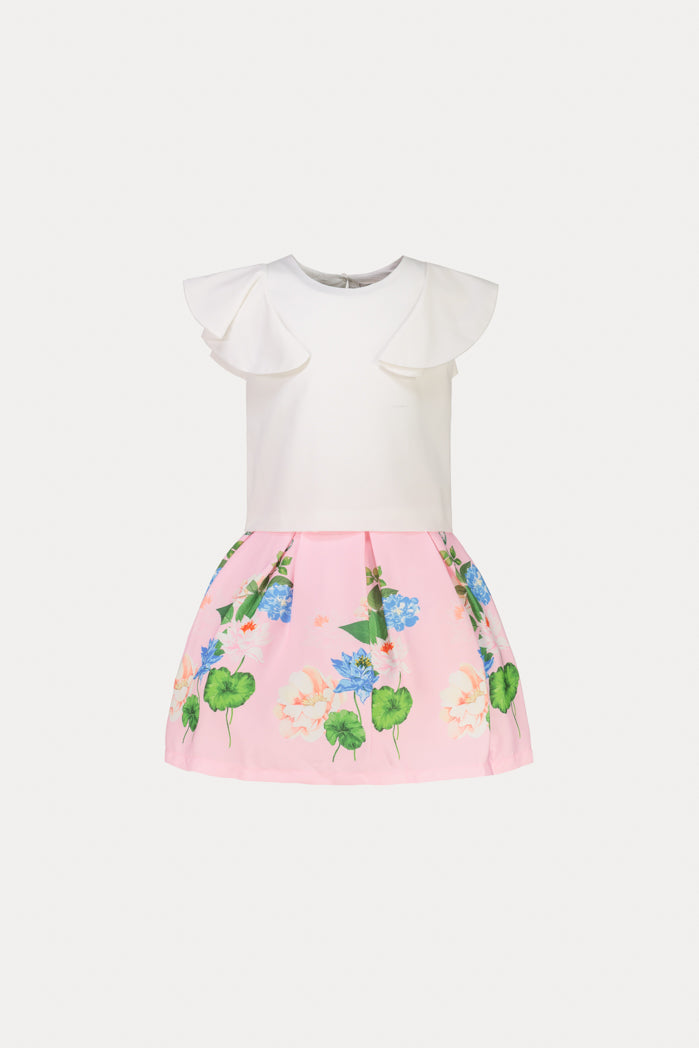 Round Neck Front And Back Side Pockets At Front Side Seam Fake Pearl Rivets On Pocket Crown Broach At Front Bell Sleeve Zipper At Front Side Seam