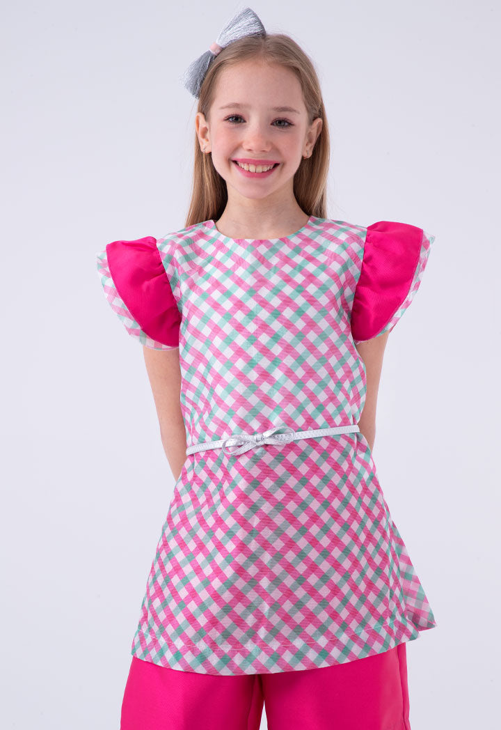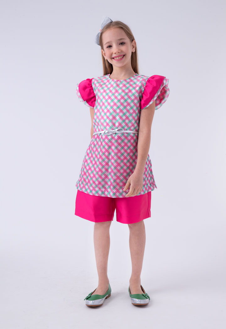 Printed Top And Plain Short Set