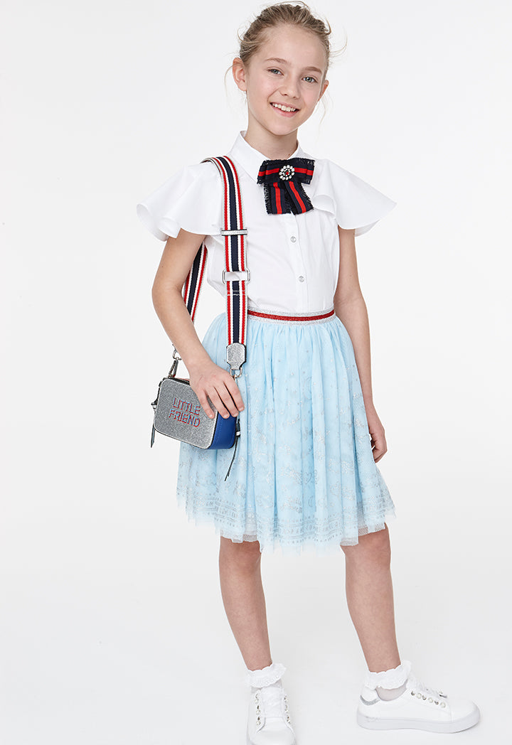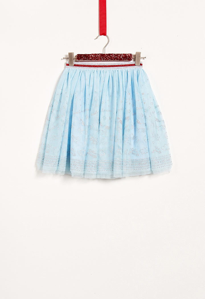 Features: Pouf skirt Elasticated waistline Pouf cut Wide hem Glitter detailing allover