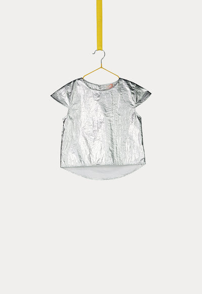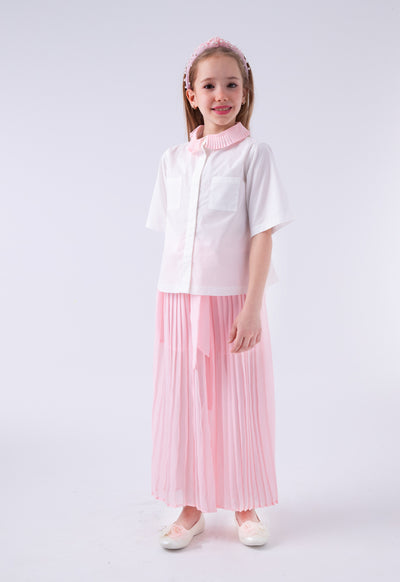 Tulle Puff Sleeve Ribbed Knit Blouse