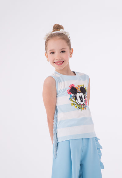 Mickey Mouse Striped Side Tassel Sleeveless T-Shirt