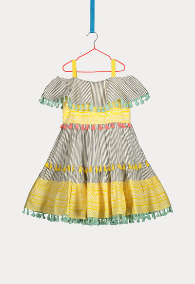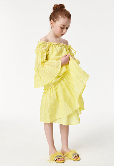 Off Shoulder Ruffle Layer Dress