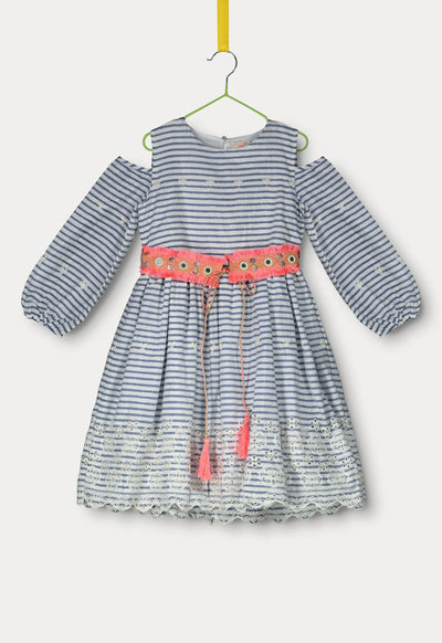 Cold Shoulder Striped Belted Dress