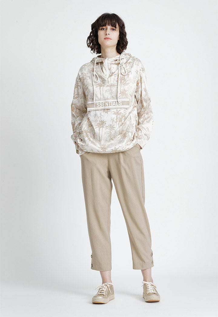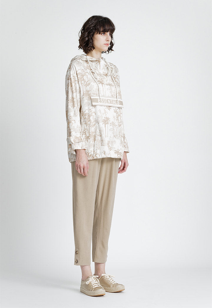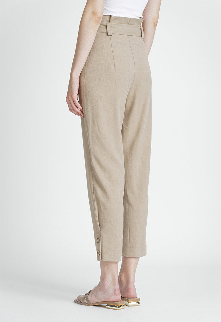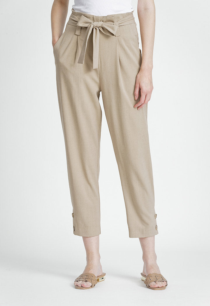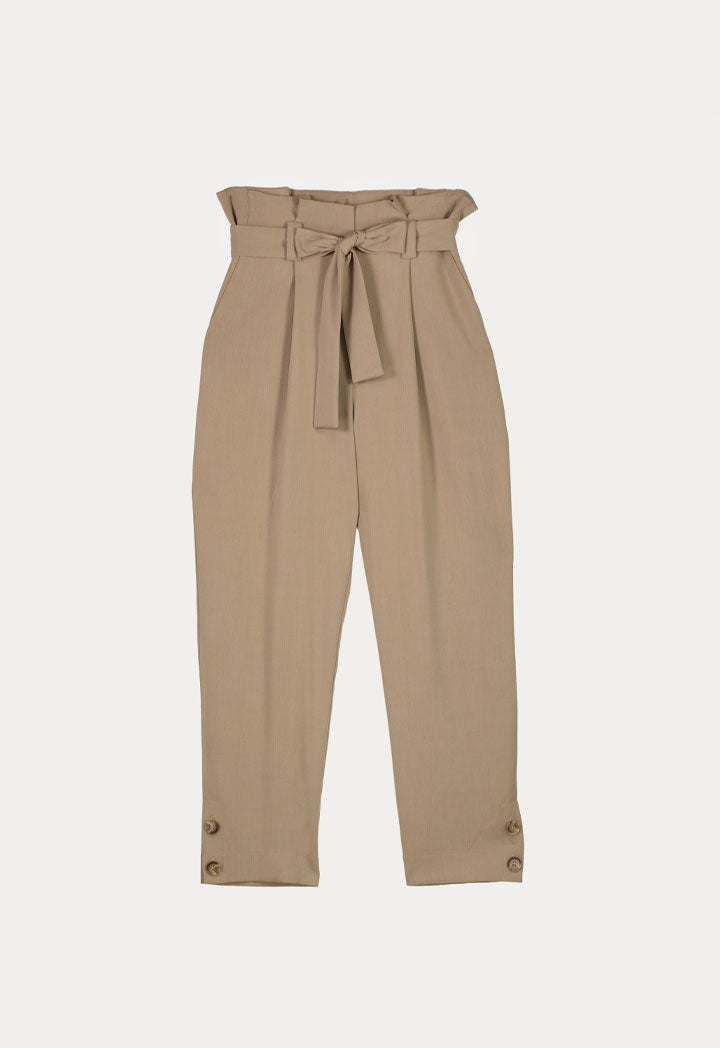 Features: Ruffle At Waist Zipper Closure At Fly Side Pockets Self Fabric Belt At Waist With Loops High Waist Buttons At Hemline